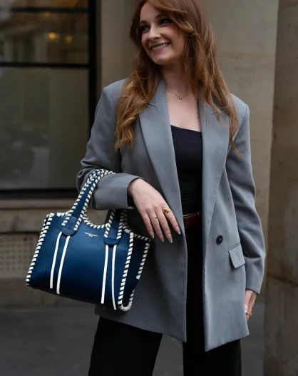 Kamelia leren handtas marineblauw/gebroken wit - 20x25x9cm