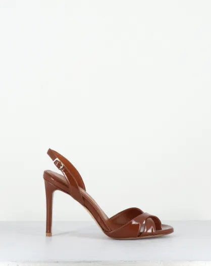 Bruine leren sandalen met hoge hak - hak van 10 cm