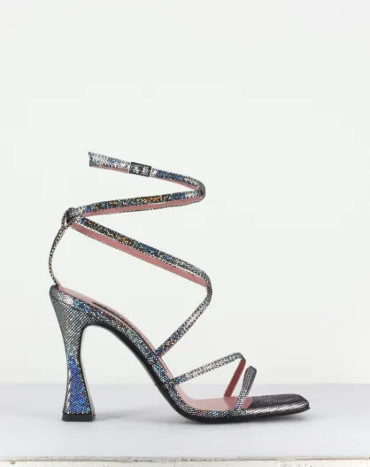 Zilverkleurige sandalen met hoge hak van aubergine - hak van 10 cm