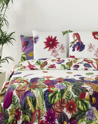 Dekbedovertrek + 2 katoenen satijnen kussenslopen Jardin Tropical multico - 260x240 cm + 2x (63x63 cm)