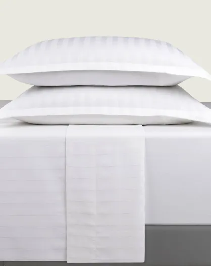 Set witte katoenen satijnen lakens met geweven strepen, 2 x (90 x 200 x 30 cm)