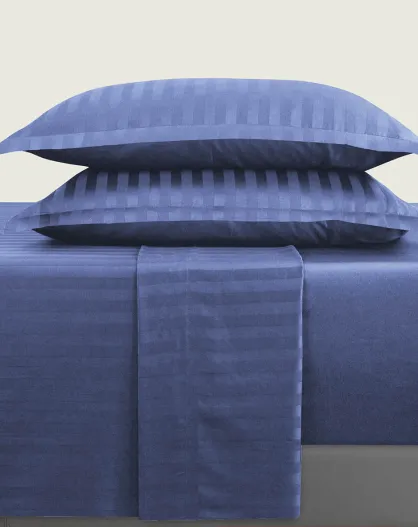 Dobby Blue katoenen satijnen lakenset met geweven strepen + 160x200x30 cm + 2x (50x70 cm)