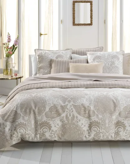 Dekbedovertrek + 2 kussenslopen katoensatijn Arles taupe - 240x220 cm + 2x (63x63 cm)