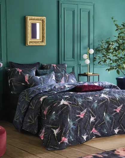 Swallows blauw katoenen satijnen dekbedovertrek + kussensloop - 140x200 cm + 63x63 cm