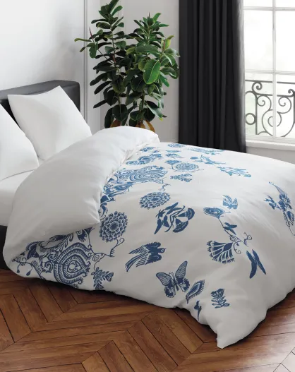 Love Stories blauw/wit katoenen satijnen dekbedovertrek + 2 kussenslopen - 240x220 cm + 2x (65x65 cm)