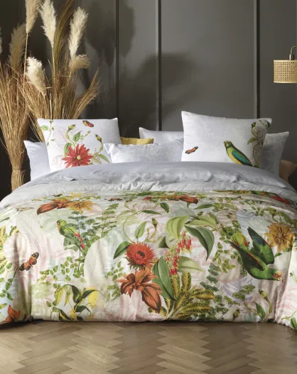 Dekbedovertrek + 2 kussenslopen katoensatijn kussenslopen Jardin D'Hiver parelgrijs - 240x220 cm + 2x (63x63 cm)
