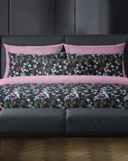 Dekbedovertrek + 2 kussenslopen Iris katoen satijn donkerblauw - 240x220 cm + 2x (63x63 cm)